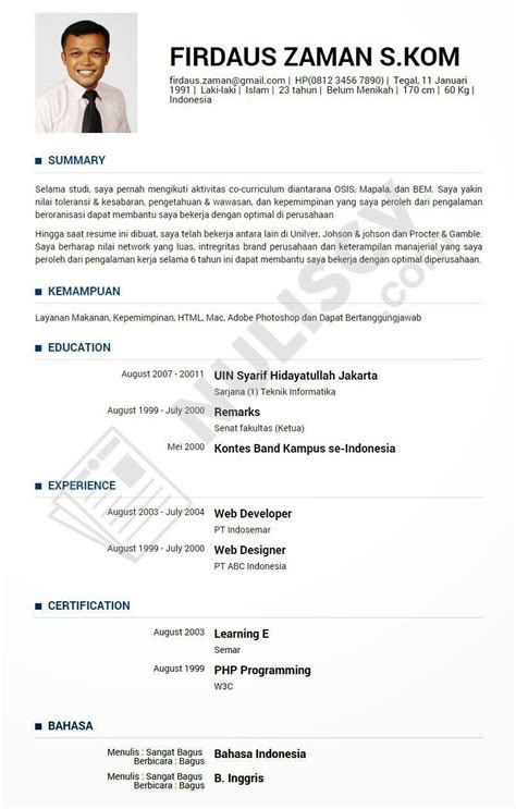 Contoh Cv Lamaran Pekerjaan Yang Baik Dan Benar
